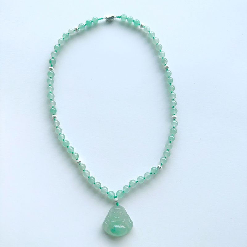 【翠綠絕美 . 頸上春光】天然非洲翠 彌勒佛珠鍊